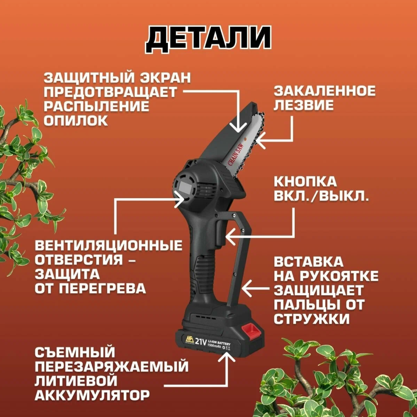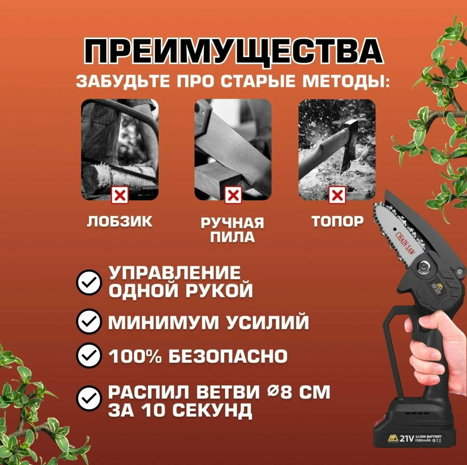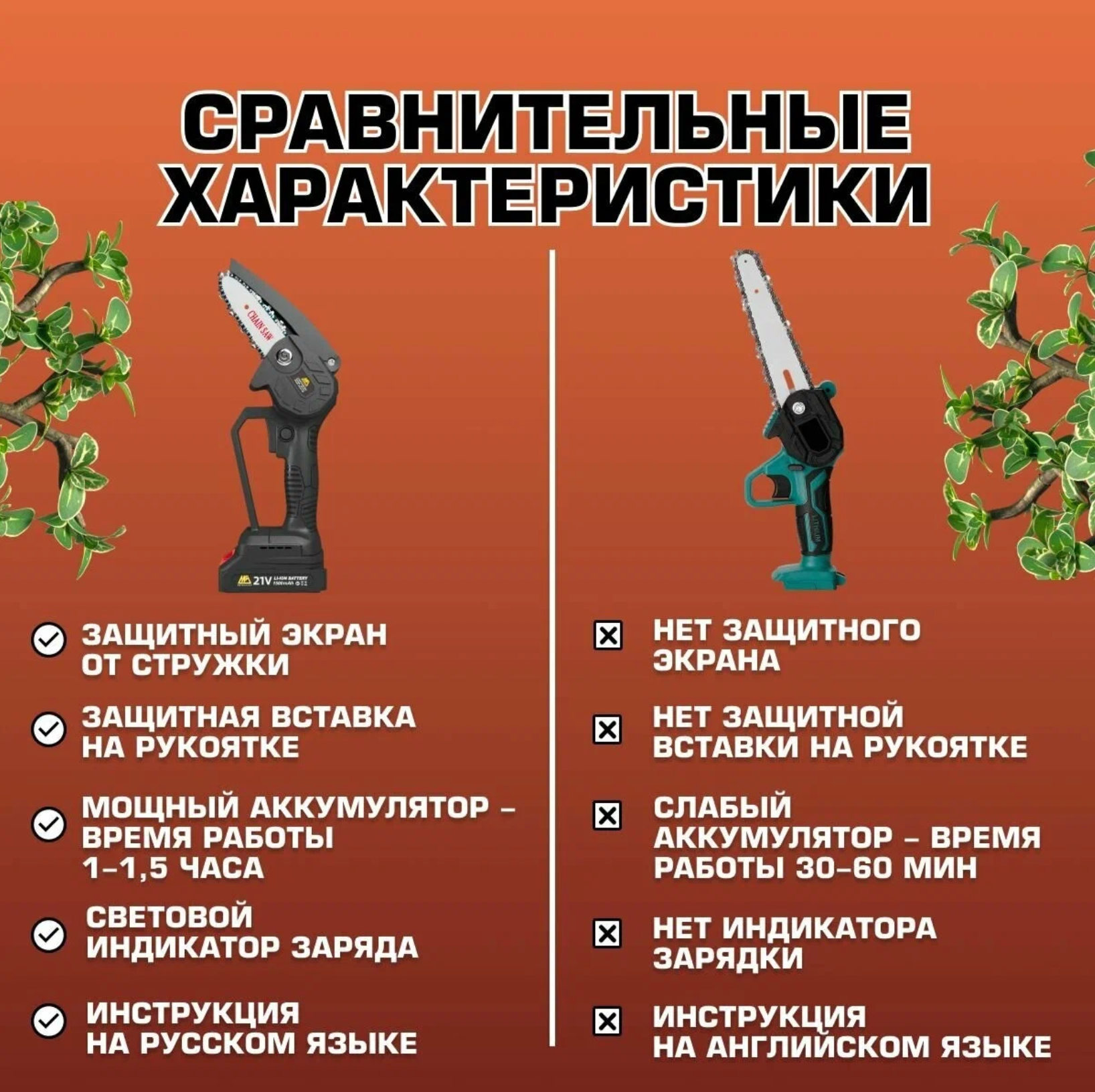 Пила электрическая цепная аккумуляторная, беспроводная ручная мини электропила садовая для дачи интересное: