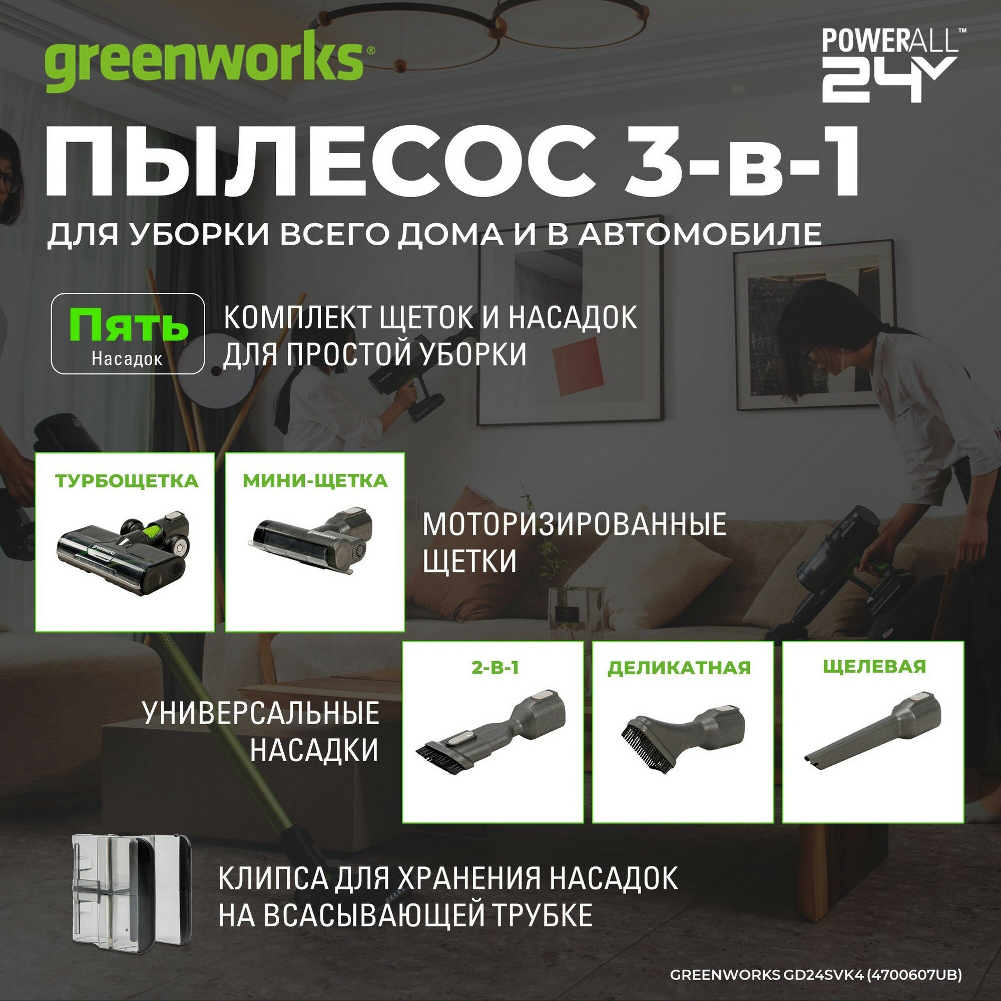 Пылесос GreenWorks G24SVK4 (4700607UB) АКБ, ЗУ