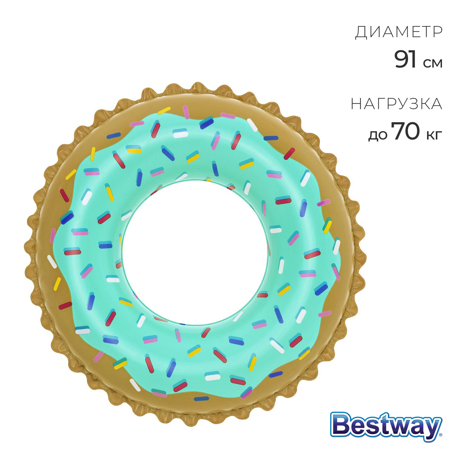 Надувной круг для плавания детский Bestway "Сладкий пончик" 36300, 91 см, от 10 лет, зеленый/коричневый