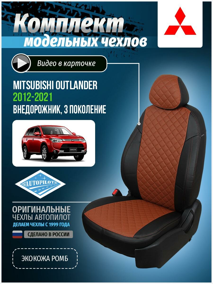 Чехлы на автомобильные сидения Автопилот для Mitsubishi Outlander III с 12г. (Экокожа ромб, Коричневый + Коричневый)