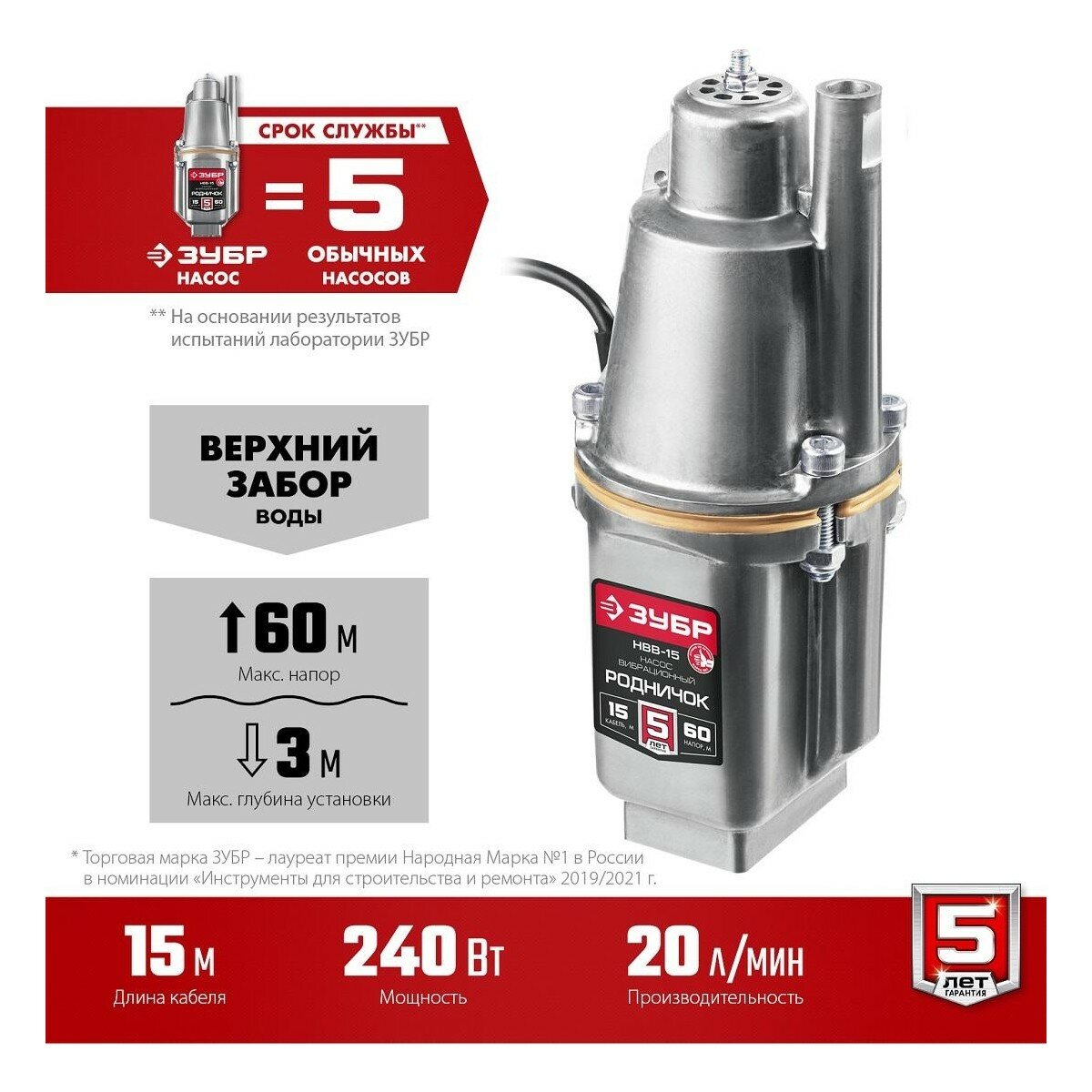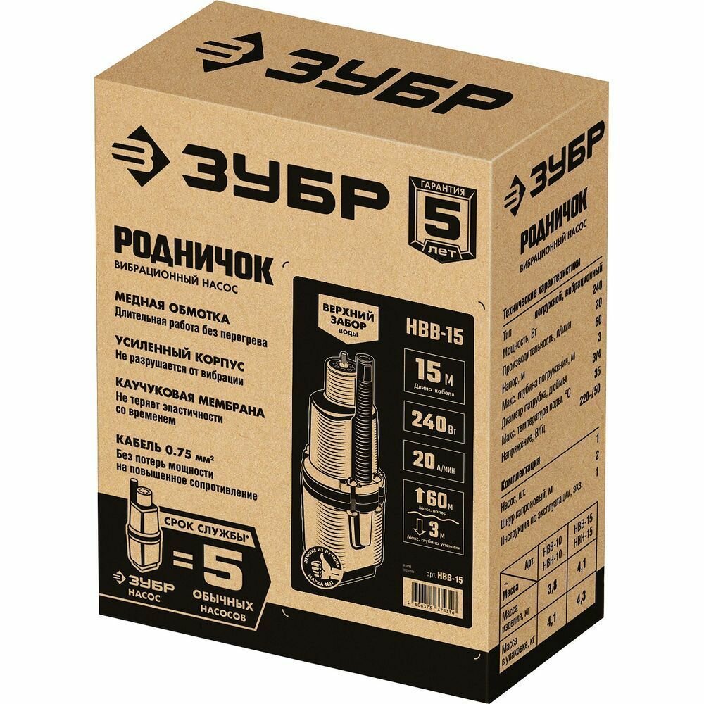 Насос вибрационный "Родничок-В", Зубр серия "мастер", НВВ-15