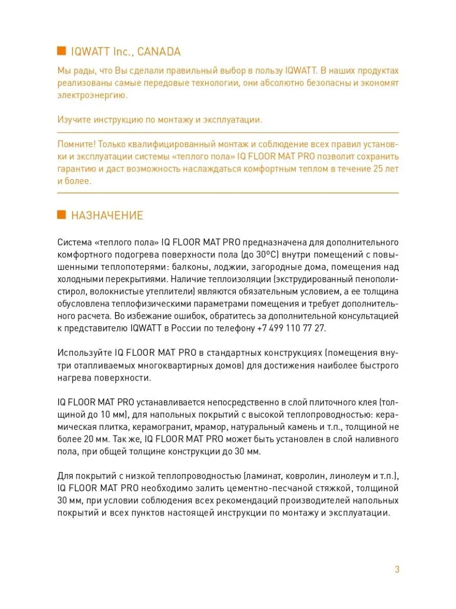 Теплый пол IQWATT IQ Floor MAT PRO-3000 Вт 15 кв м(электрический нагревательный мат)