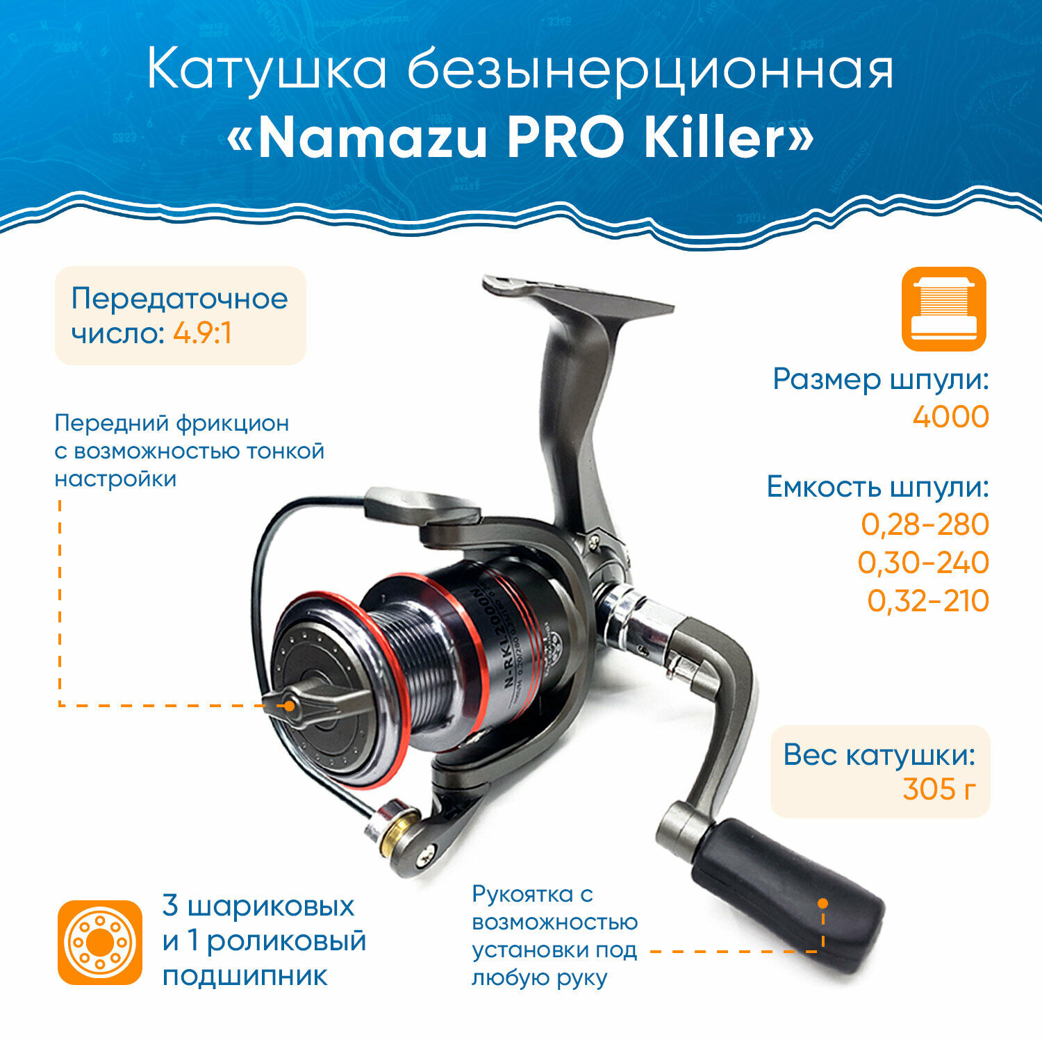 Катушка безынерционная Namazu PRO Killer NEW KL4000, 3+1 подш, метал. шпуля