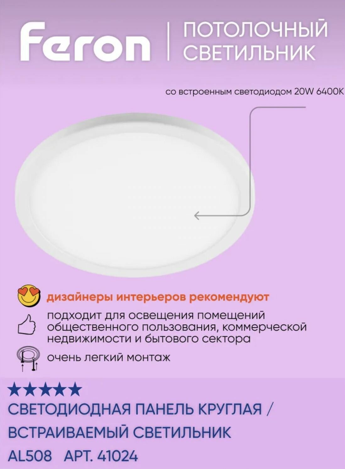 Светильник потолочный Feron, серия AL508, 41024, 20W, LED