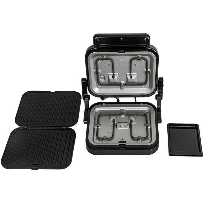 Гриль электрический JVC со съемными антипригарными панелями 28х21,2 см, функция приготовления стейка, автоопределение толщины, 3 степени прожарки, 1800 Вт