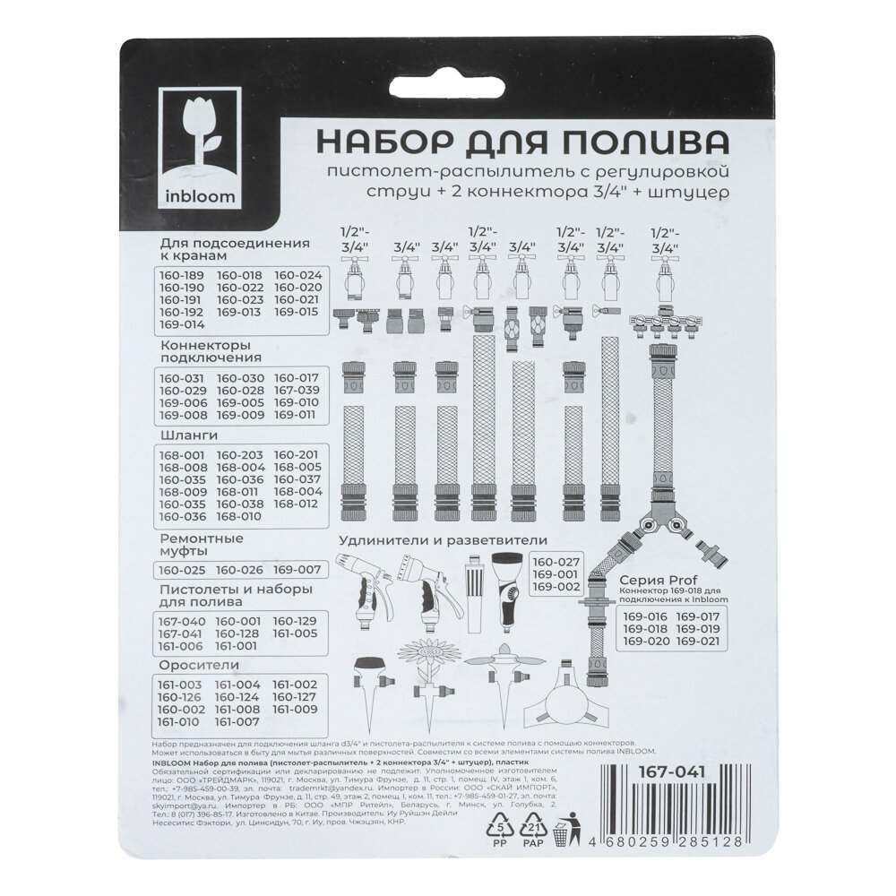 Набор для полива (INBLOOM Набор для полива (пистолет-распылитель + 2 коннектора 3/4" + штуцер) пластик 167-041)