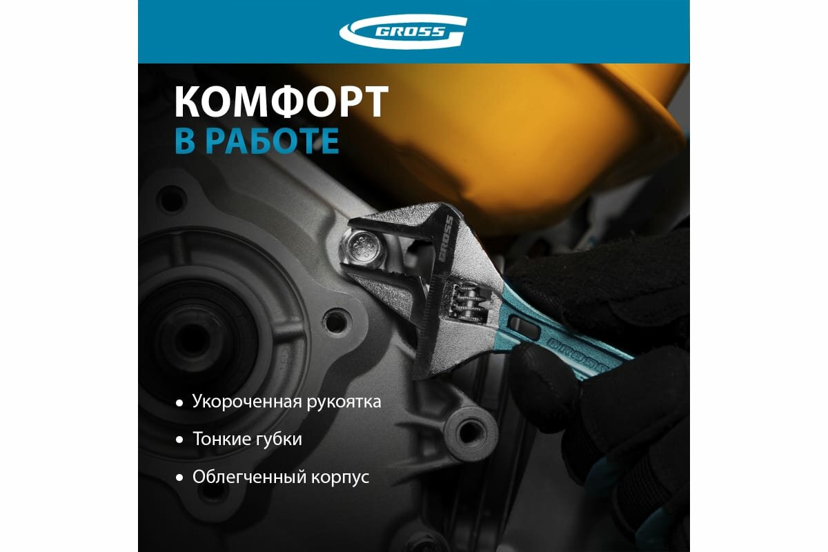Ключ разводной, 150 мм,CrV, укороченная ручка //GROSS