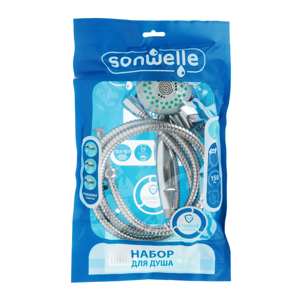 SonWelle Набор для душа (лейка+шланг), 3 режима, 150см, DF2838/DF2952/S7, хром, блистер S03-008 (арт. 718848) интересное: