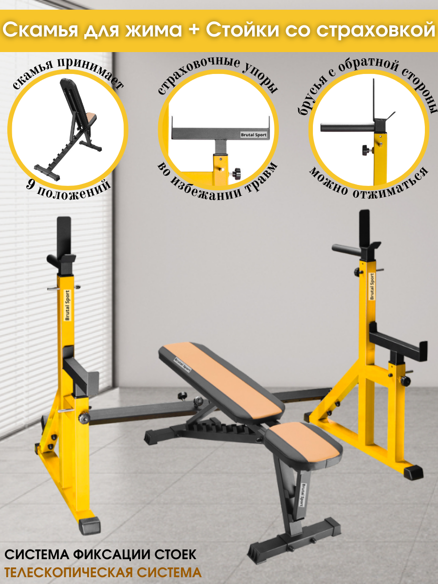 Скамья A1 для жима + Стойки со страховкой (Телескопическая система) интересное: