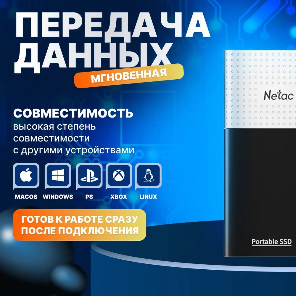 Портативный SSD Netac 500Gb/USB-C/EXT/Black (NT01Z9-500G-32BK), 1881795
