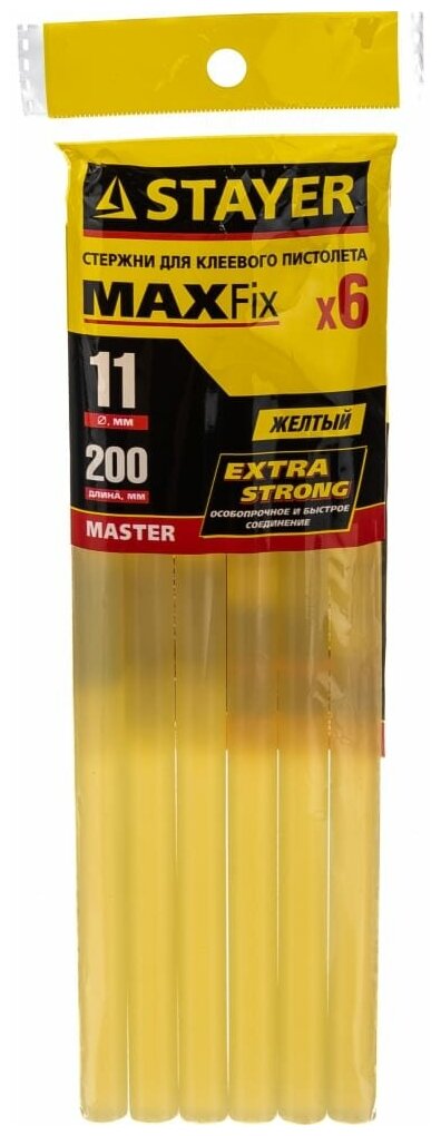 Stayer Стержни "MASTER" для клеевых термоклеящих пистолетов, цвет желтый по бумаге и дереву, 11х200мм, 6шт 2-06821-Y-S06