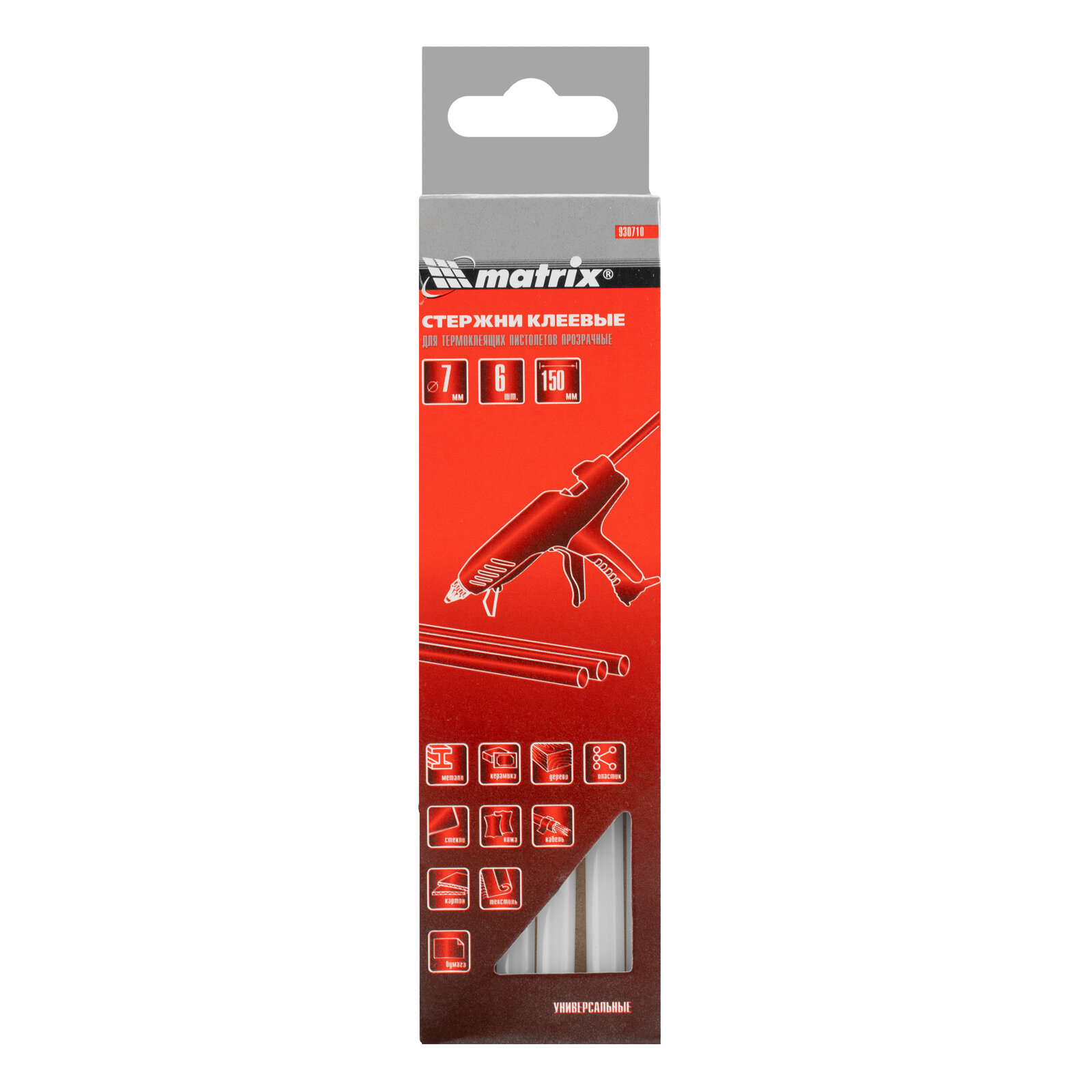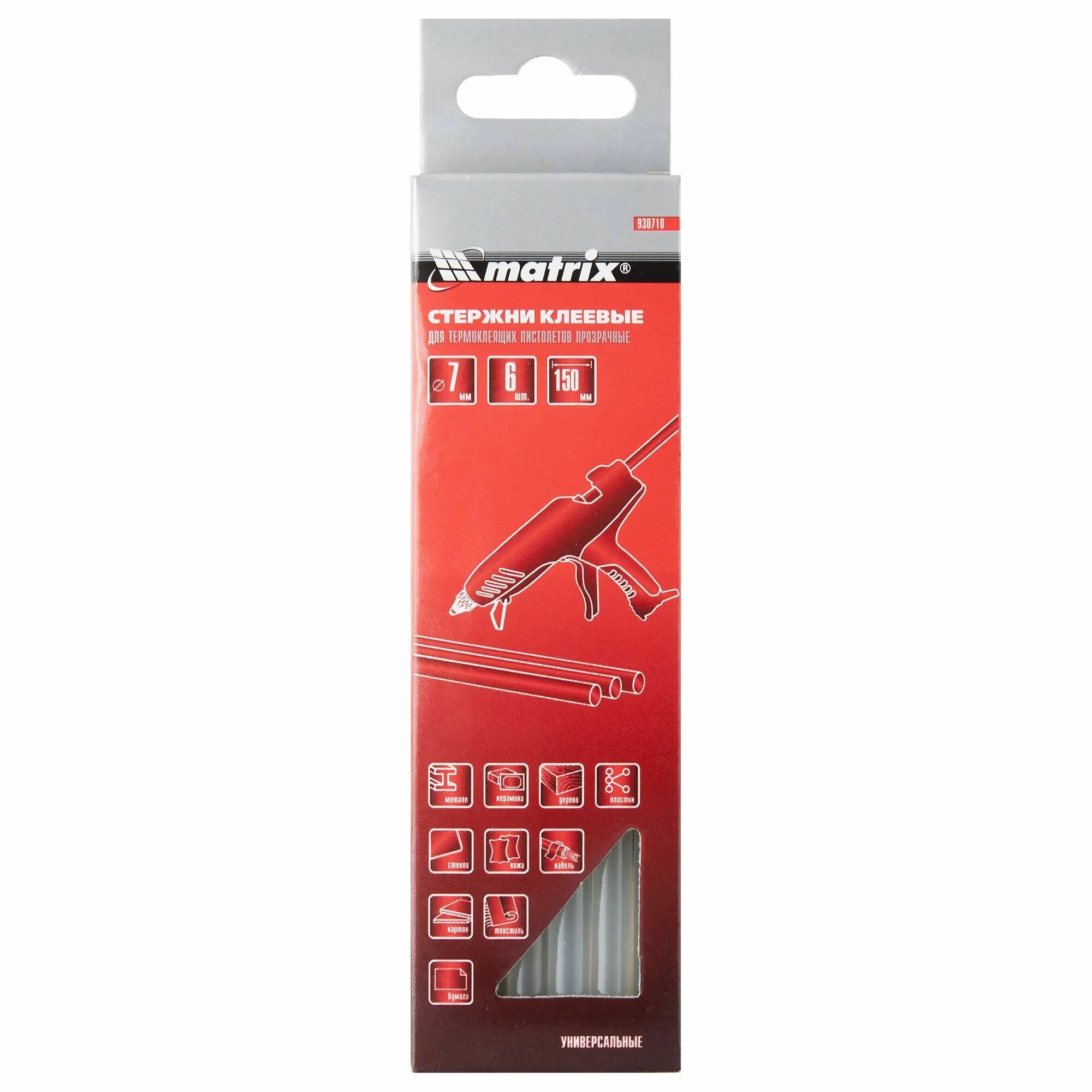 MATRIX 930710 Стержни клеевые, прозрачные, 7x150 мм, 6 шт./упак. MATRIX 930710