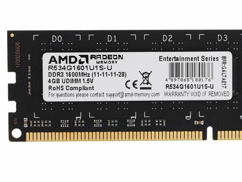 Оперативная память AMD R534G1601U1S-U DDR3 - 1x 4ГБ 1600МГц, DIMM, Ret