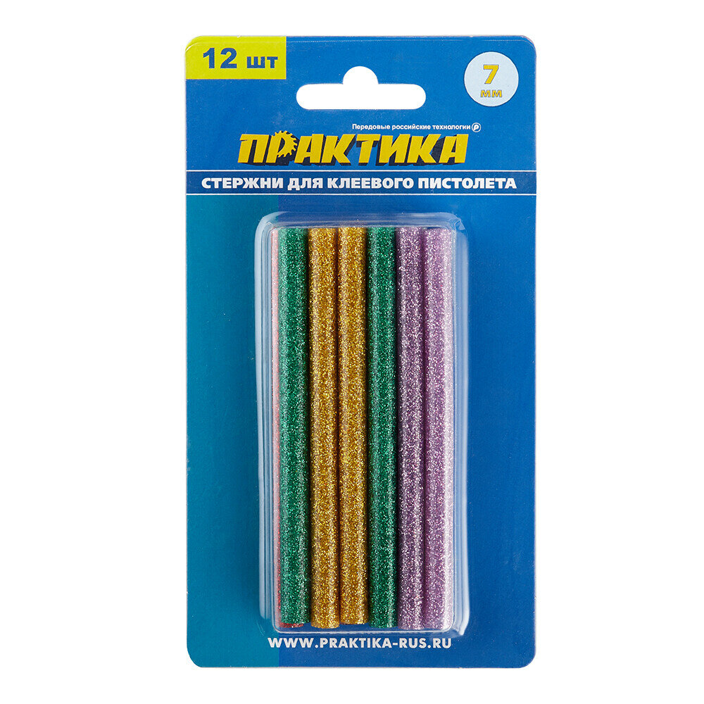 Клей ПРАКТИКА для термопистолета 7х100мм 12 шт. цветной