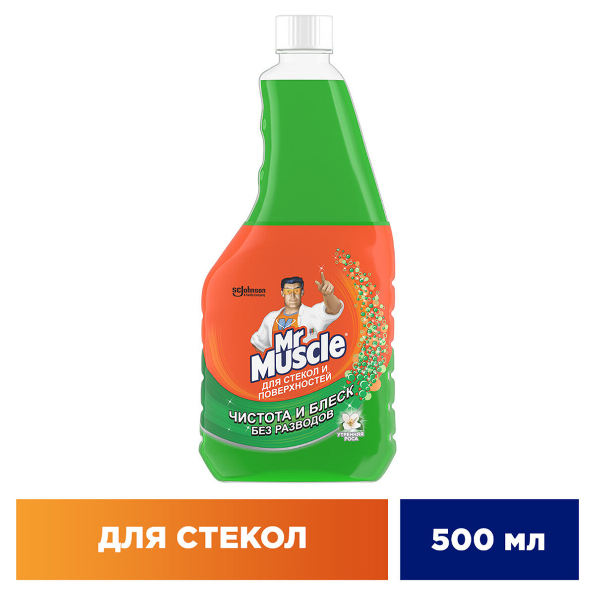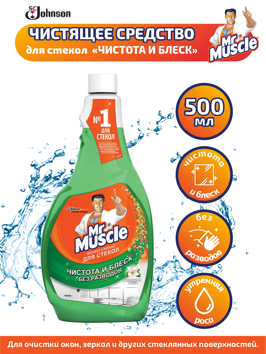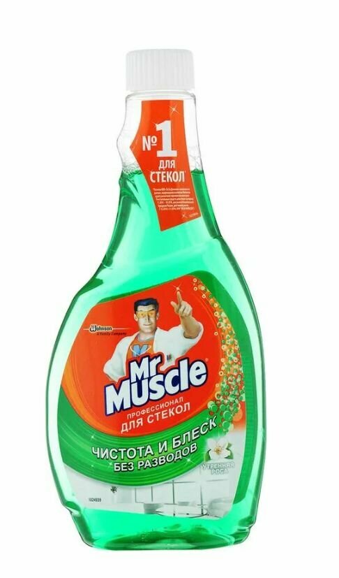 Средство для чистки стекла Средство для мытья стекол и зеркал (сменный флакон) 500 мл, мистер мускул "Утренняя роса"