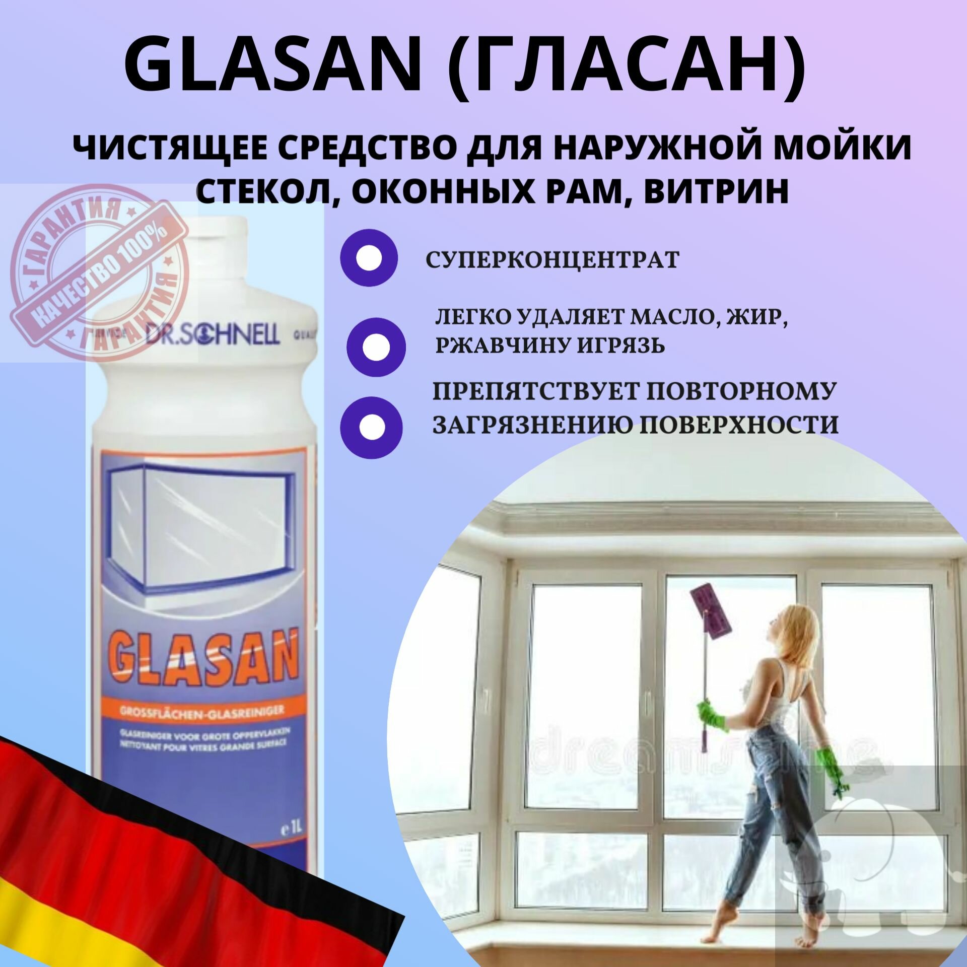 Dr Schnell GLASAN ср-во для очистки стеклянных поверхностей 1л с защитным эффектом