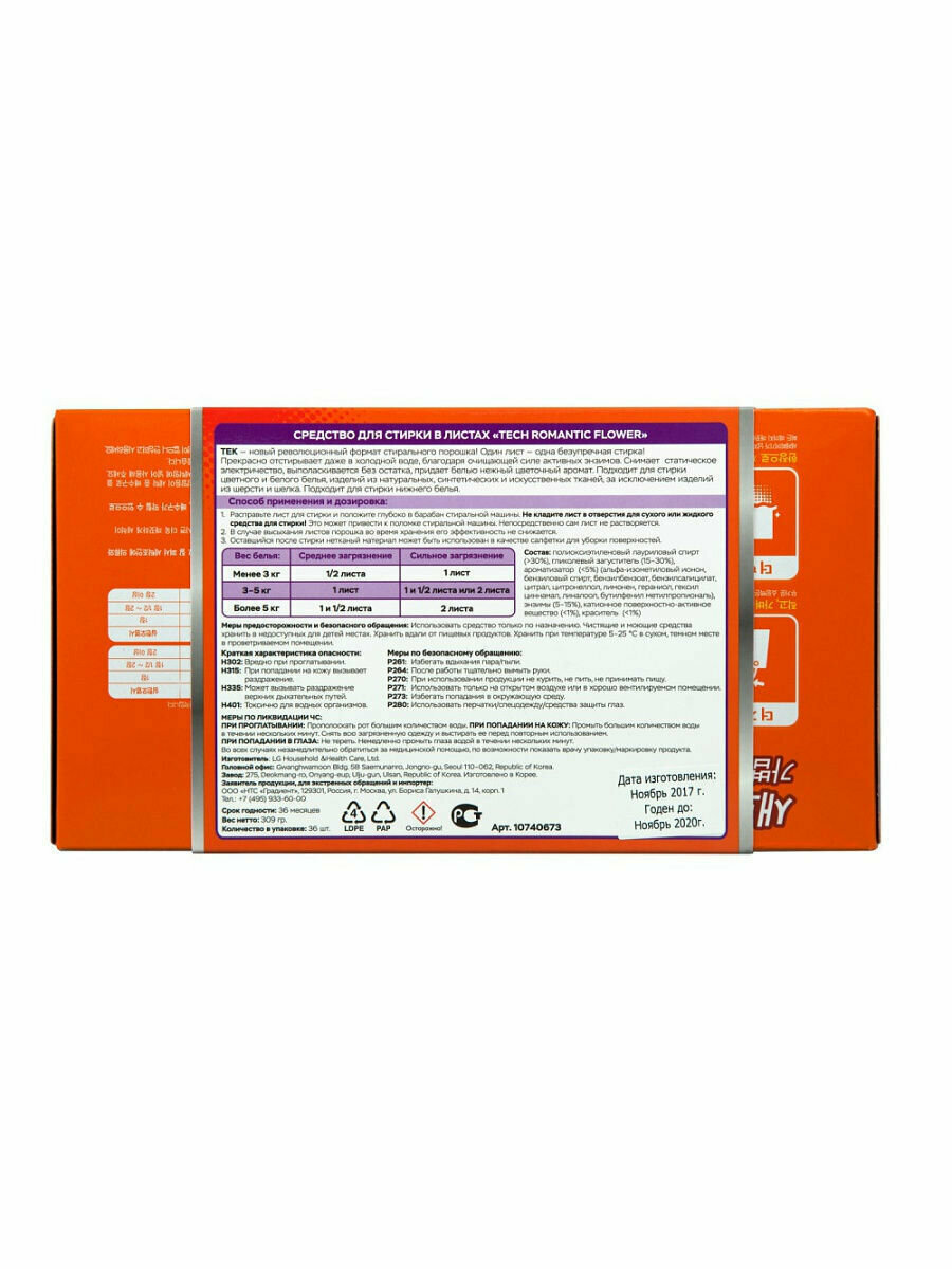 Купить LG Tech Romantic Flower Средство для стирки в форме салфеток с нежным цветочным ароматом 36 шт