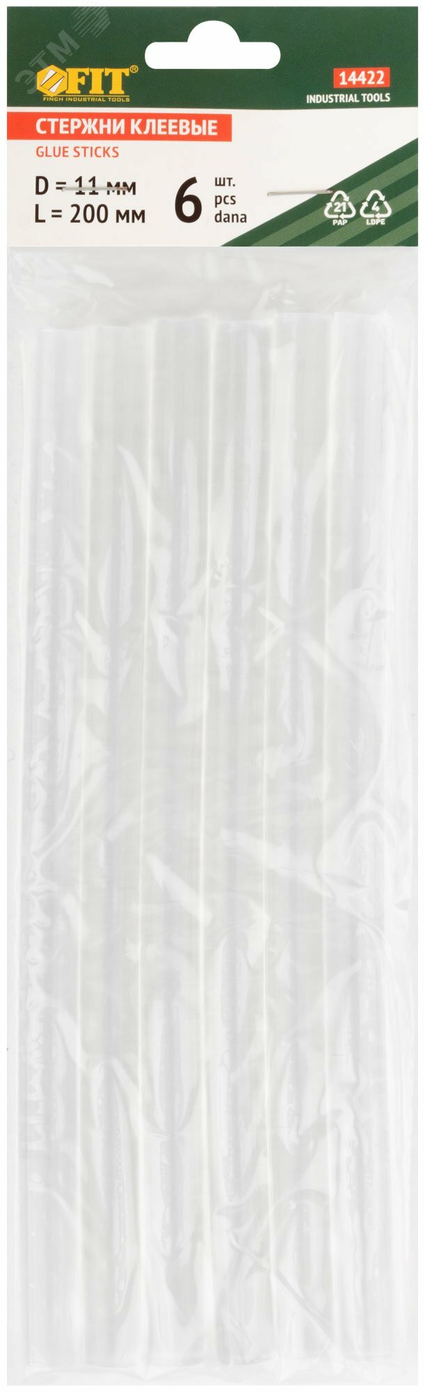 Купить Стержни клеевые бесцветные д.11 мм х 200 мм, 6 шт | код 14422 | FIT ( 2 упак.)