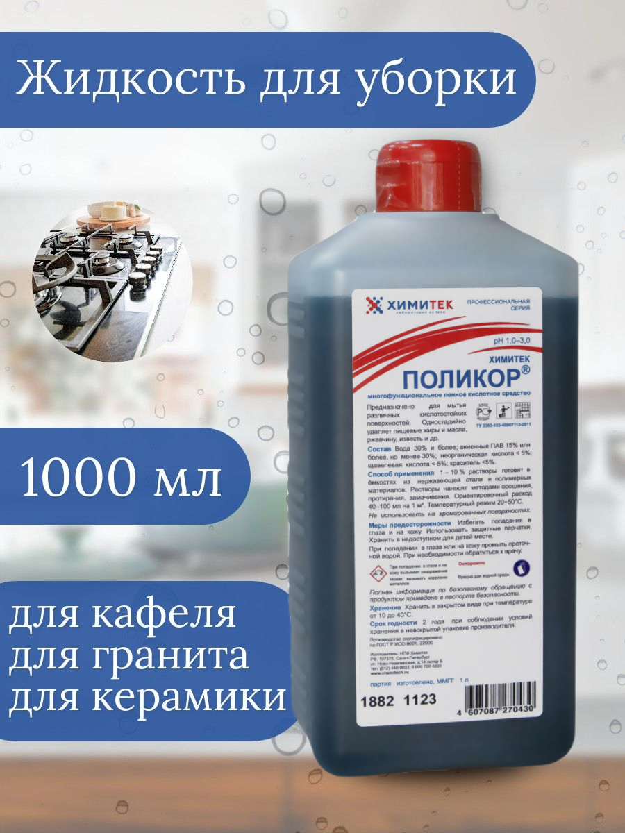 Промышленная химия Химитек Поликор, 1л, моющее средство для кафеля, кислотное, пенное (80105)