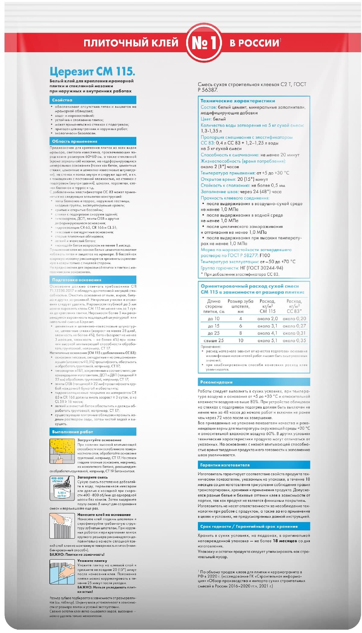 Клей СМ115 для мрам. плитки и мозаики, церезит - 25 кг.