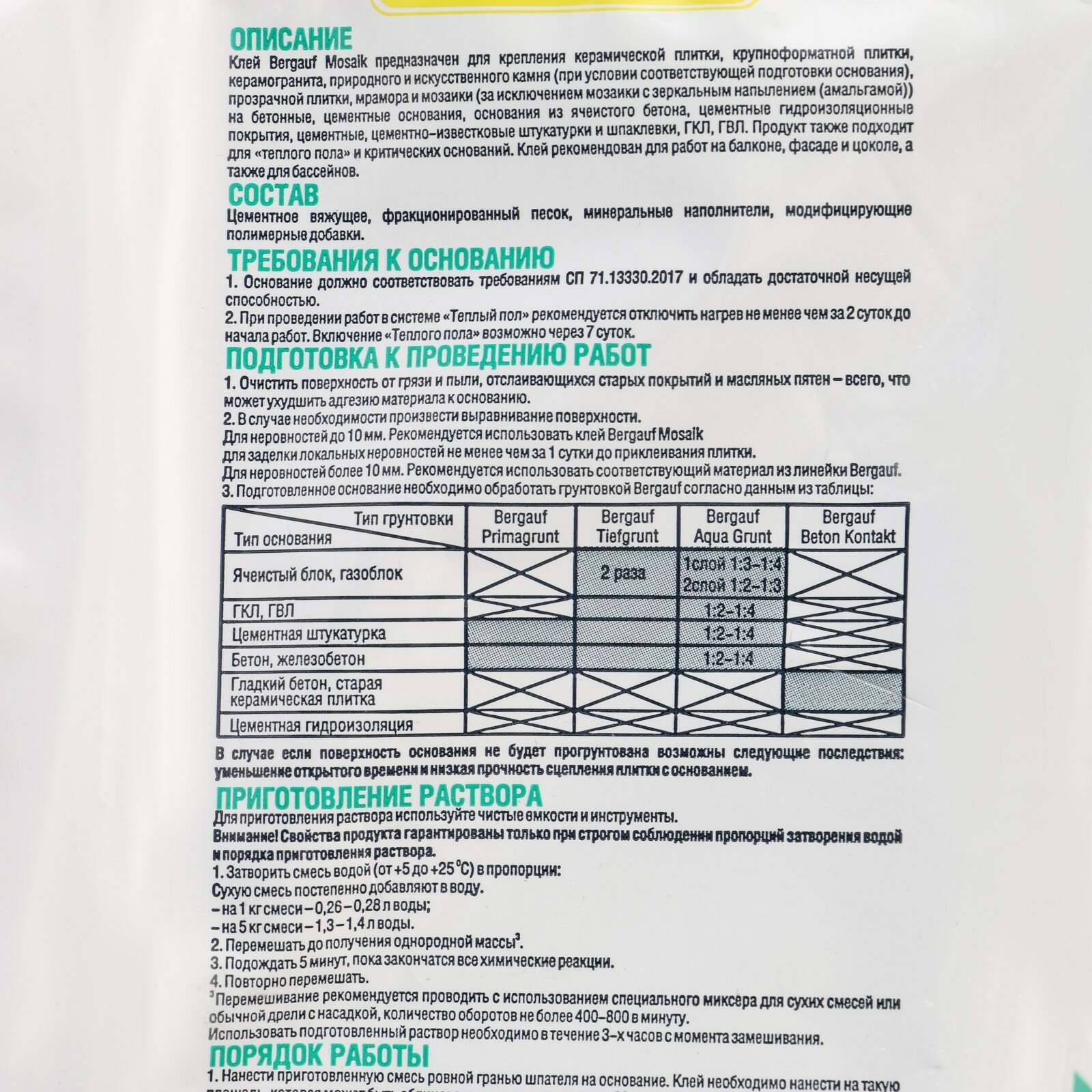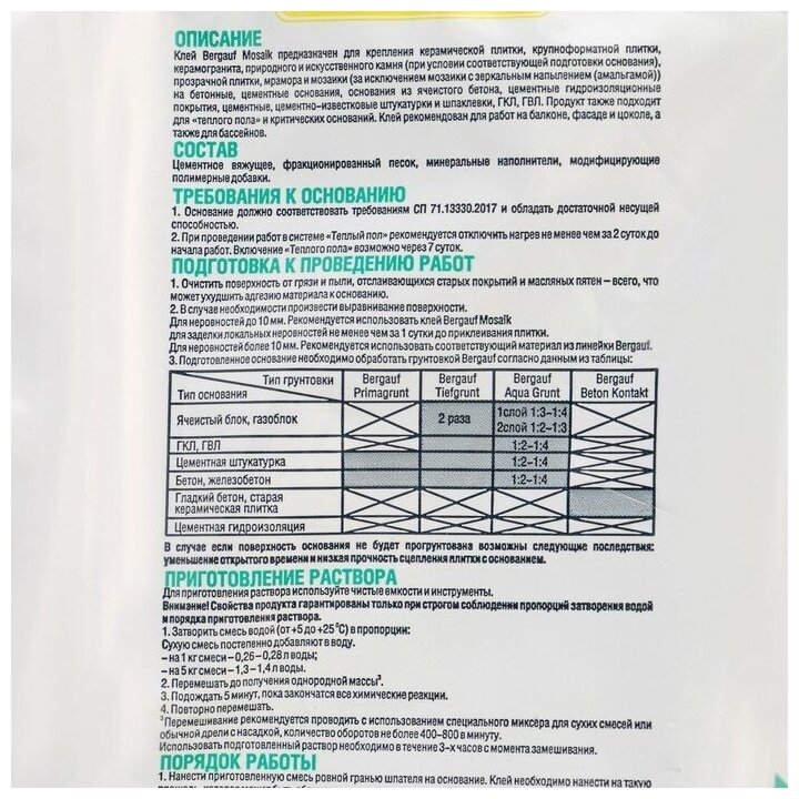 Клей "BERGAUF MOSAIK" (5кг) белый интересное: