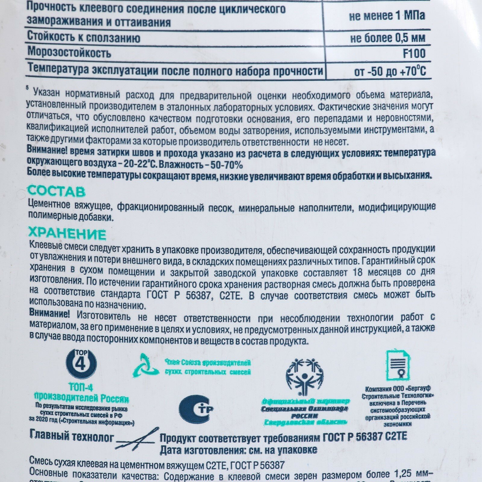 | Прочность сцепления | 1 МПа |
