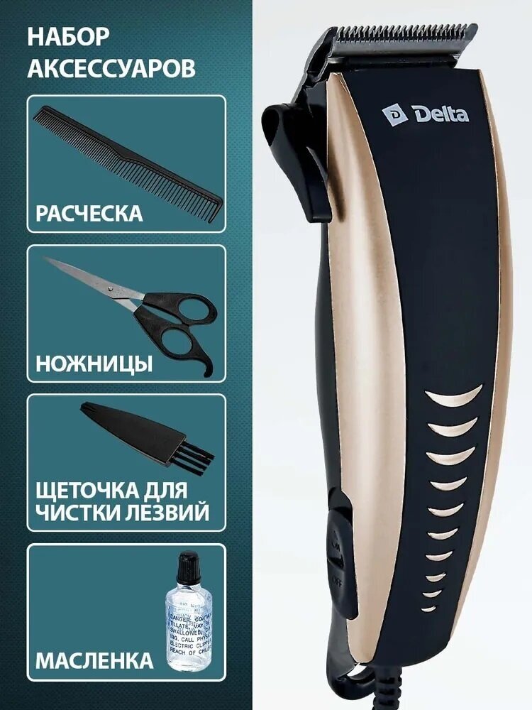 Машинка для стрижки DELTA DL-4051 бронзовый,10Вт, 4 съемных гребня