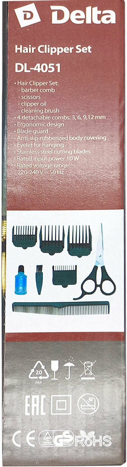 Машинка для стрижки DELTA DL-4051 серебро,10Вт, 4 съемных гребня