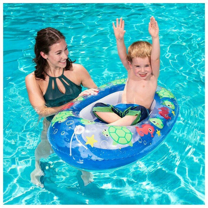 Детская надувная лодка Морской мир синяя, 102х69 см, от 3 до 6 лет, BestWay