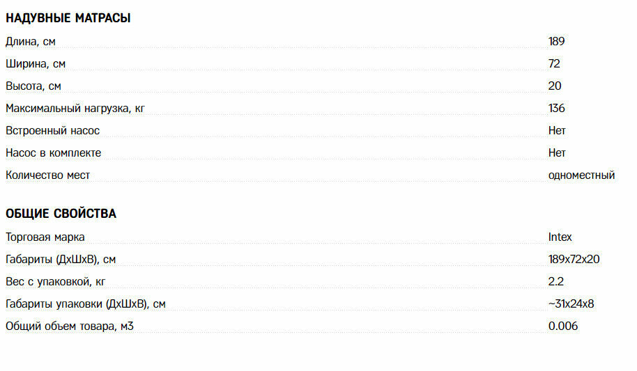 Матрас INTEX "Кемпинг", 189х72х20 см (И67998)