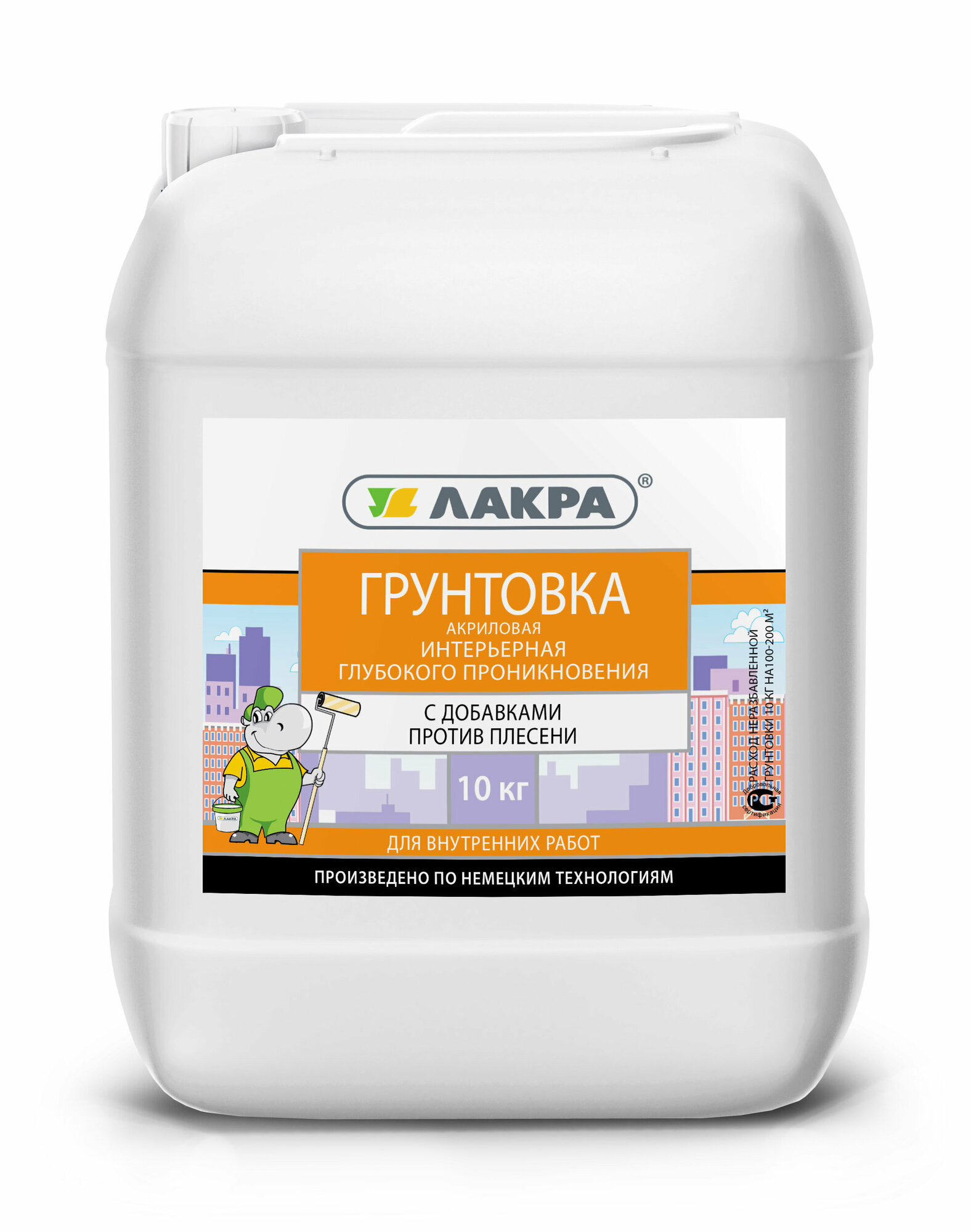 Грунт интерьерный глубокого проникновения против плесени Лакра 10кг
