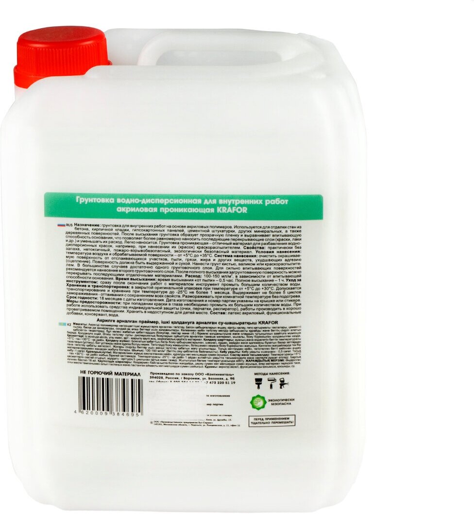 Континенталь Грунтовка проникающая водно-дисперсионная, для внутренних работ Krafor, 5 л