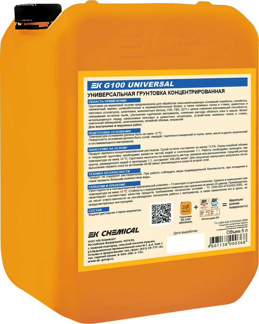 грунт Грунтовка ЕК G100 универсальная концентрат 1:2 EK ЕК Кемикал 5 л .
