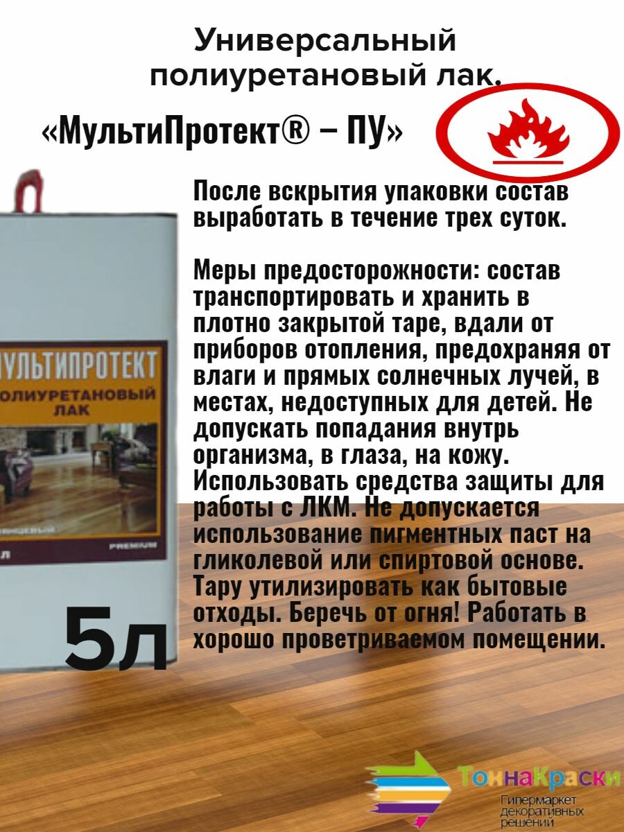 Ниже Вы можете прочитать отзывы на МультиПротект Полиуретановый Лак Глянцевое покрытие 5л, ознакомится с подробными характеристиками, посмотреть интересные обзоры и фотографии на МультиПротект Полиуретановый Лак Глянцевое покрытие 5л.