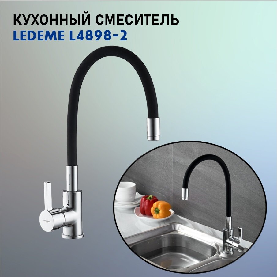 Смеситель для кухни LEDEME гибкий шланг, черный/хром L4898-2 808289