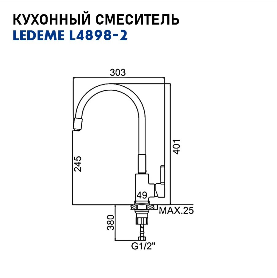 Смеситель для кухни Ledeme L4898-2 808289