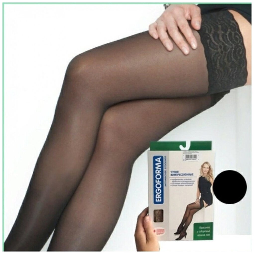 Чулки компрессионные Ergoforma 221 с ажурной резинкой на силиконовых лентах, 2 класс, Размер 3, Черный