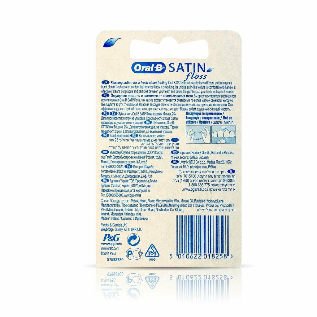 Зубная нить Oral-B Satin floss, с мятным вкусом, 25 м