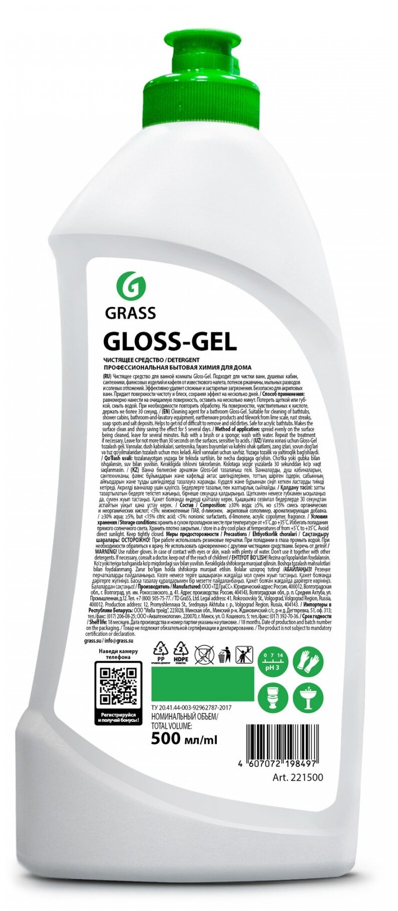 Чистящее средство гель для ванной Grass Gloss gel средство для акриловых ванн для кухни 500 мл