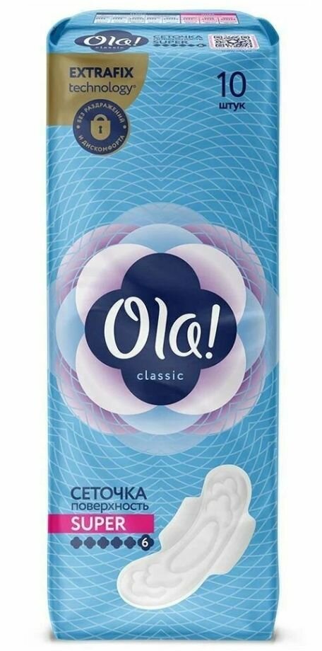 Ola! Прокладки гигиенические Classic Wings Super, Мягкая поверхность, 10 шт/уп, 6 уп