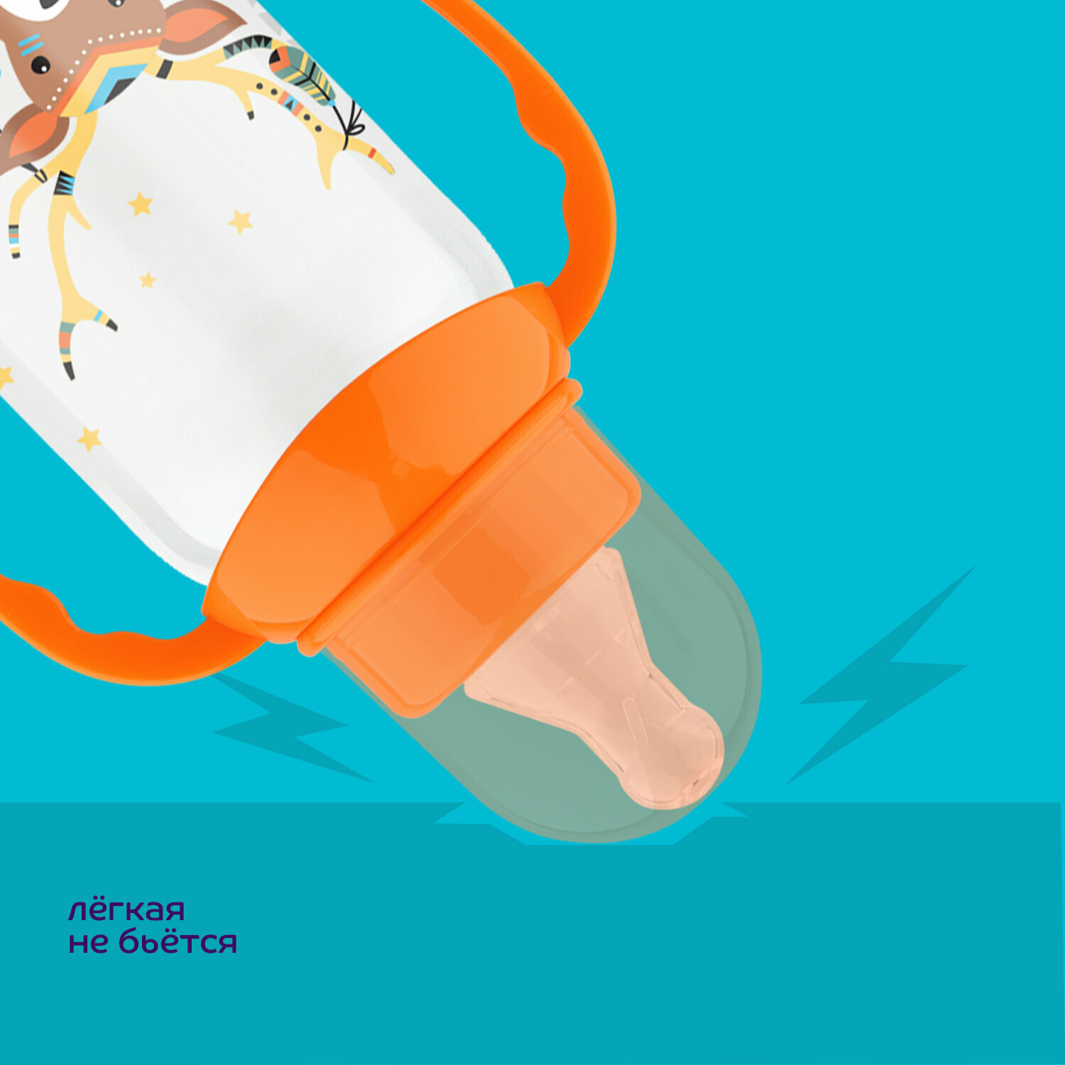 Lubby Бутылочка для кормления с соск. мол., с тал. и руч., от 0 мес, 250 мл, PP, сил., цвет оранжевый; олененок