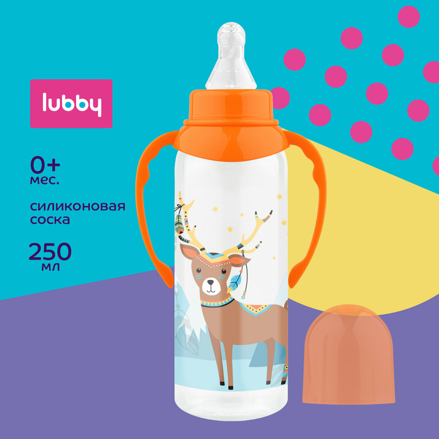 Lubby Бутылочка Оленёнок из ПП приталенная с ручками и силиконовой соской 250мл 0+