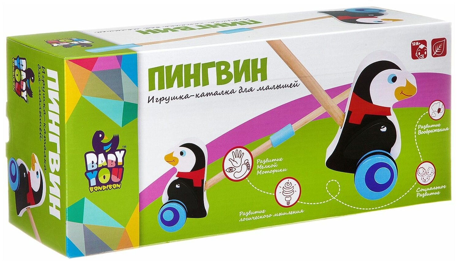 Игр. дерев., каталка с ручкой пингвин, Bondibon, BOX, 35х15х12 см., арт. TKC278 интересное: