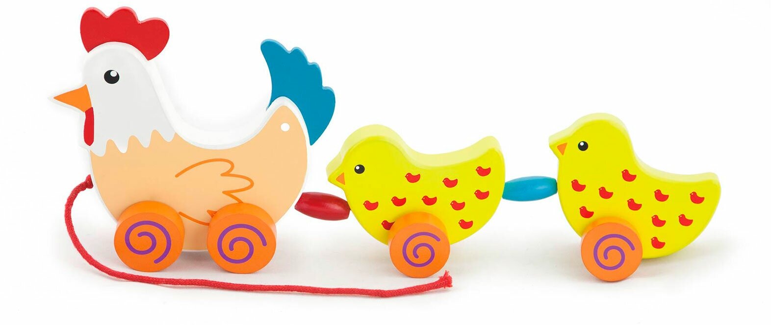 Каталка на веревочке Курочка с цыплятами в коробке VIGA 50078