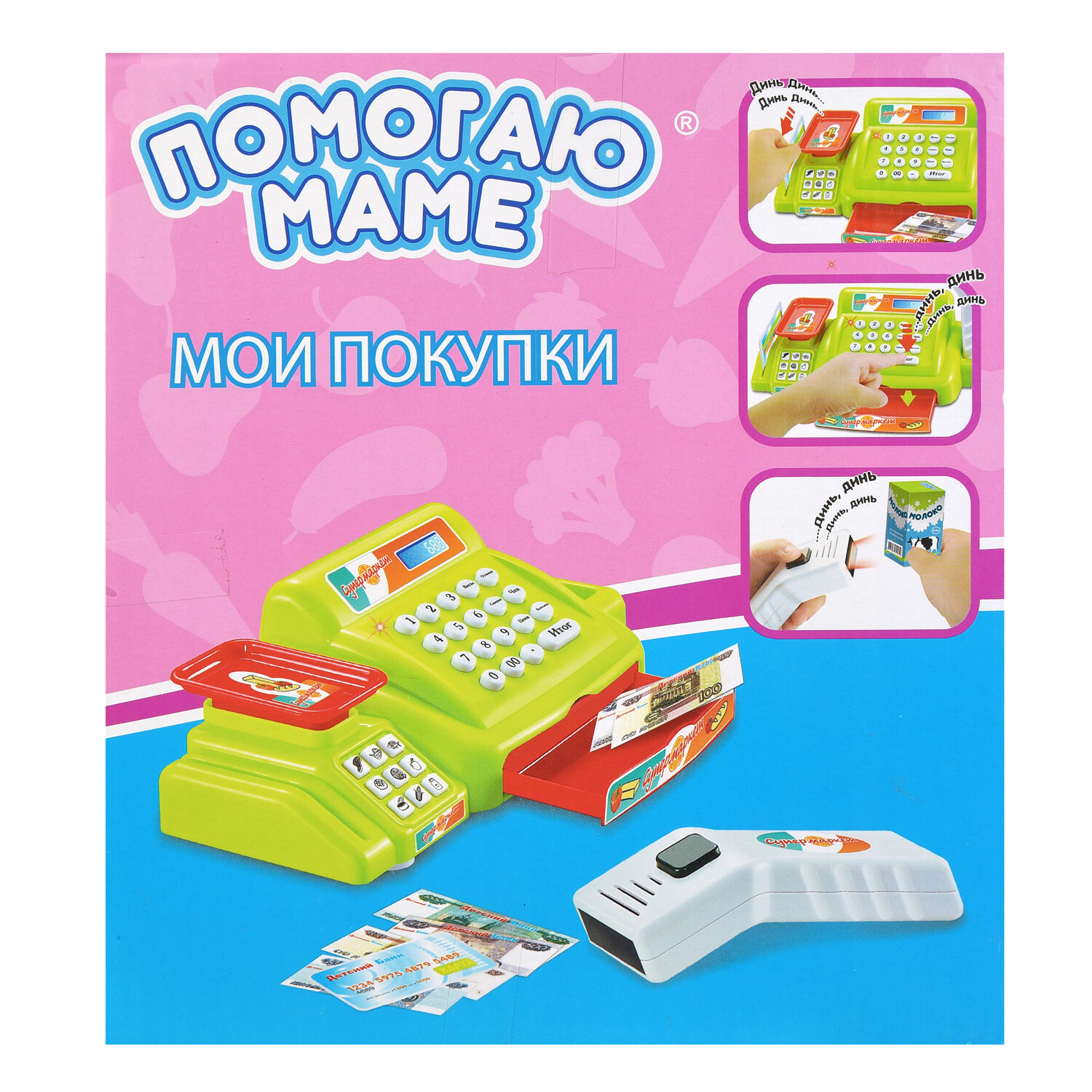 Касса Помогаю Маме, в наборе с продуктами, на батарейках, с эффектами