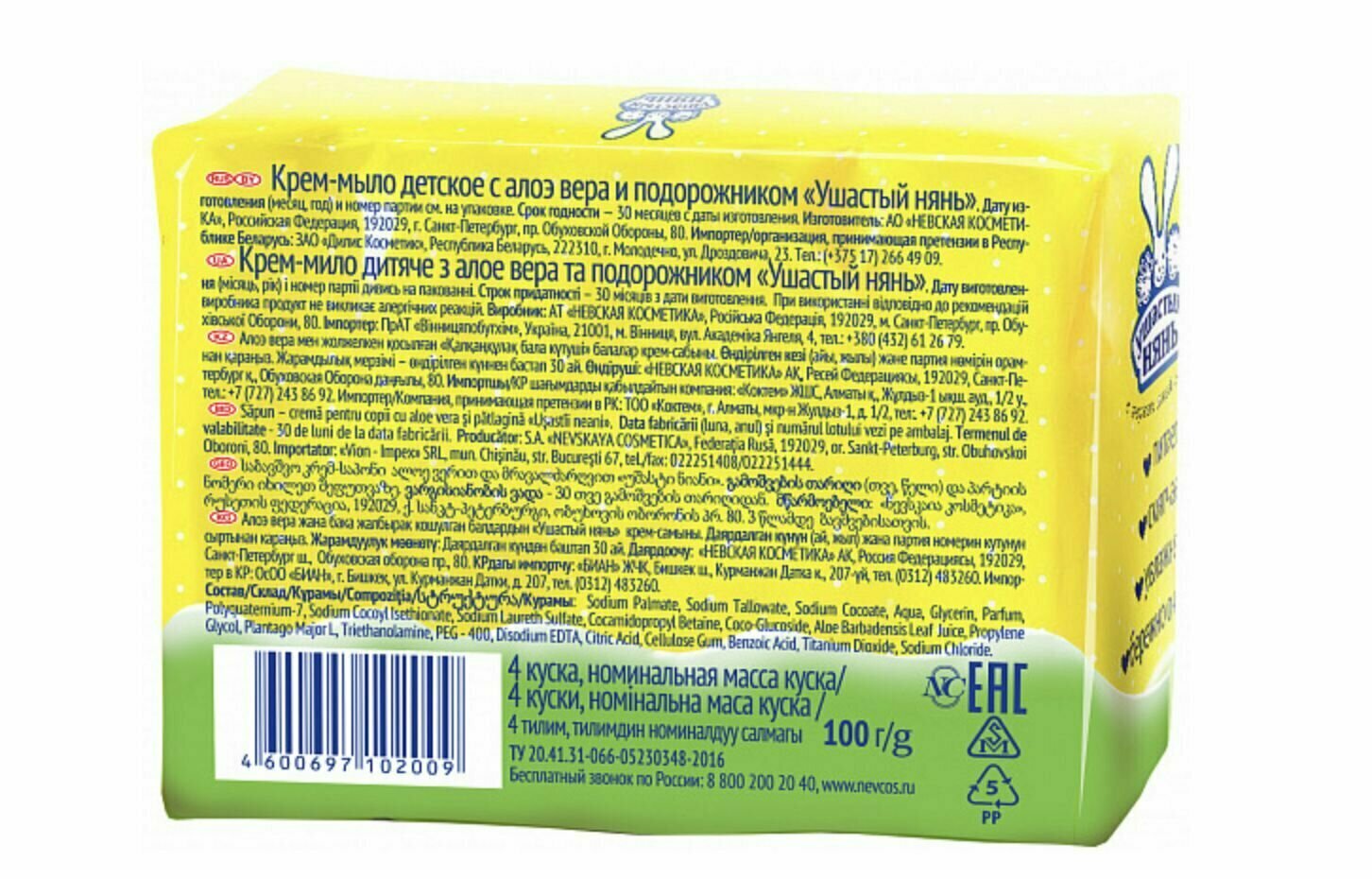Ниже Вы можете прочитать отзывы на Крем-мыло детское Ушастый Нянь с алоэ вера и подорожником 4х100 г, ознакомится с подробными характеристиками, посмотреть интересные обзоры и фотографии на Крем-мыло детское Ушастый Нянь с алоэ вера и подорожником 4х100 г.