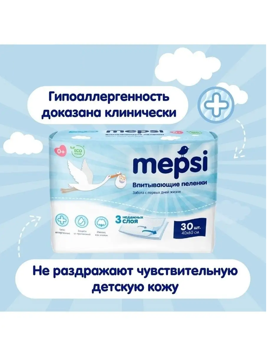 Mepsi Пелёнки детские впитывающие 60 60 30шт