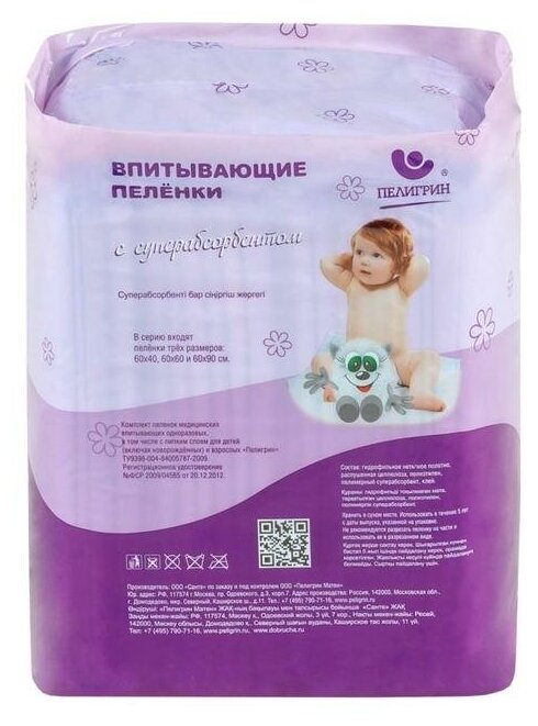 Одноразовая пеленка Пелигрин с суперабсорбентом 60х40, 12 шт. интересное:
