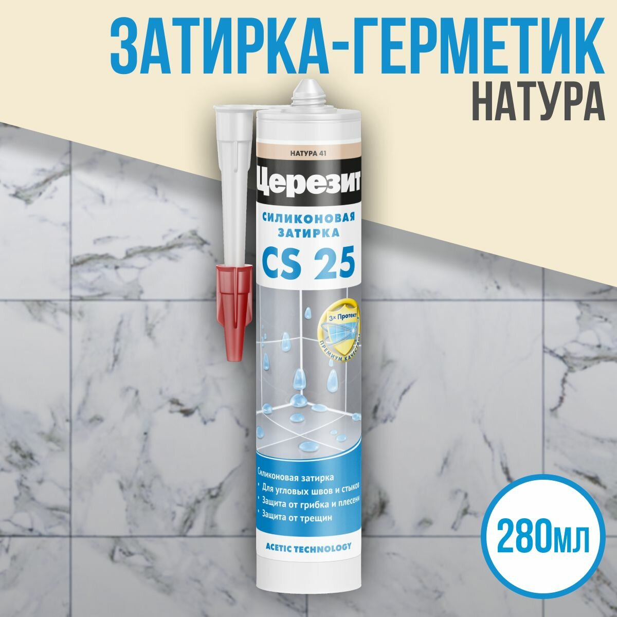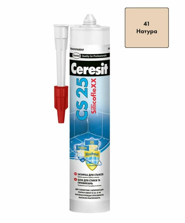 Затирка-герметик силиконовая Церезит CS 25 №41 натура 280 мл / для ванной, для кухни