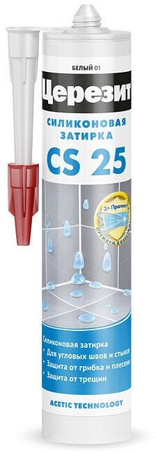 | Подробная комплектация | Герметик-затирка силиконовая противогрибковая Ceresit CS 25 41 натура 280 мл, 1 шт. |